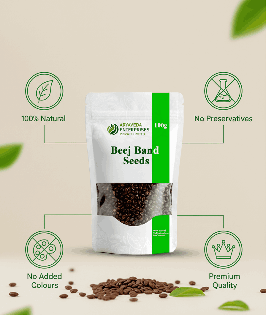 Beej Band Seeds are natural herbal seeds traditionally valued in Ayurveda. Carefully cleaned and packed to maintain purity and freshness, this product is free from preservatives and chemicals. Sourced and processed with care, it retains its natural quality. Suitable for herbal preparations and traditional uses. Store in a cool and dry place away from moisture.