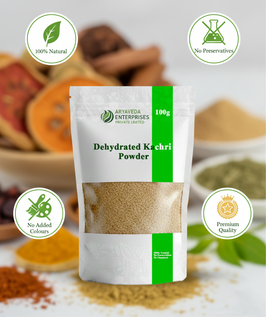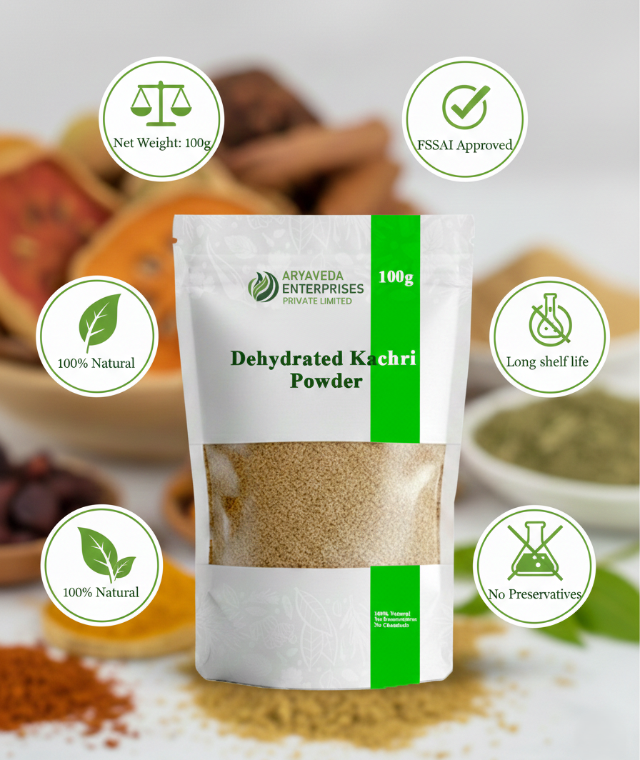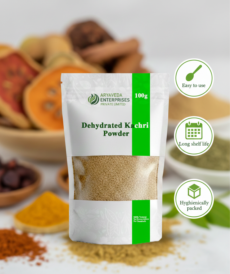 Dehydrated Kachri Powder is a natural spice powder prepared from dried kachri. Carefully processed and packed to preserve freshness and quality, this product is free from preservatives and chemicals. Traditionally used in food preparations, it adds natural flavor. Store in a cool and dry place away from moisture.